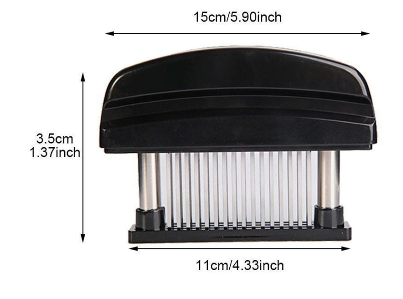 2. Goodbye tough fiber rubber meat-ultra-sharp stainless steel needle blade pierces the toughest meat, so you can enjoy mouth-watering delicious professional dishes at a very low cost. It only takes a few seconds to turn a hard piece of meat into a melt-in-mouth steak. Suitable for all cutting meat, every time you and all your guests retain the flavor and enjoyment!
